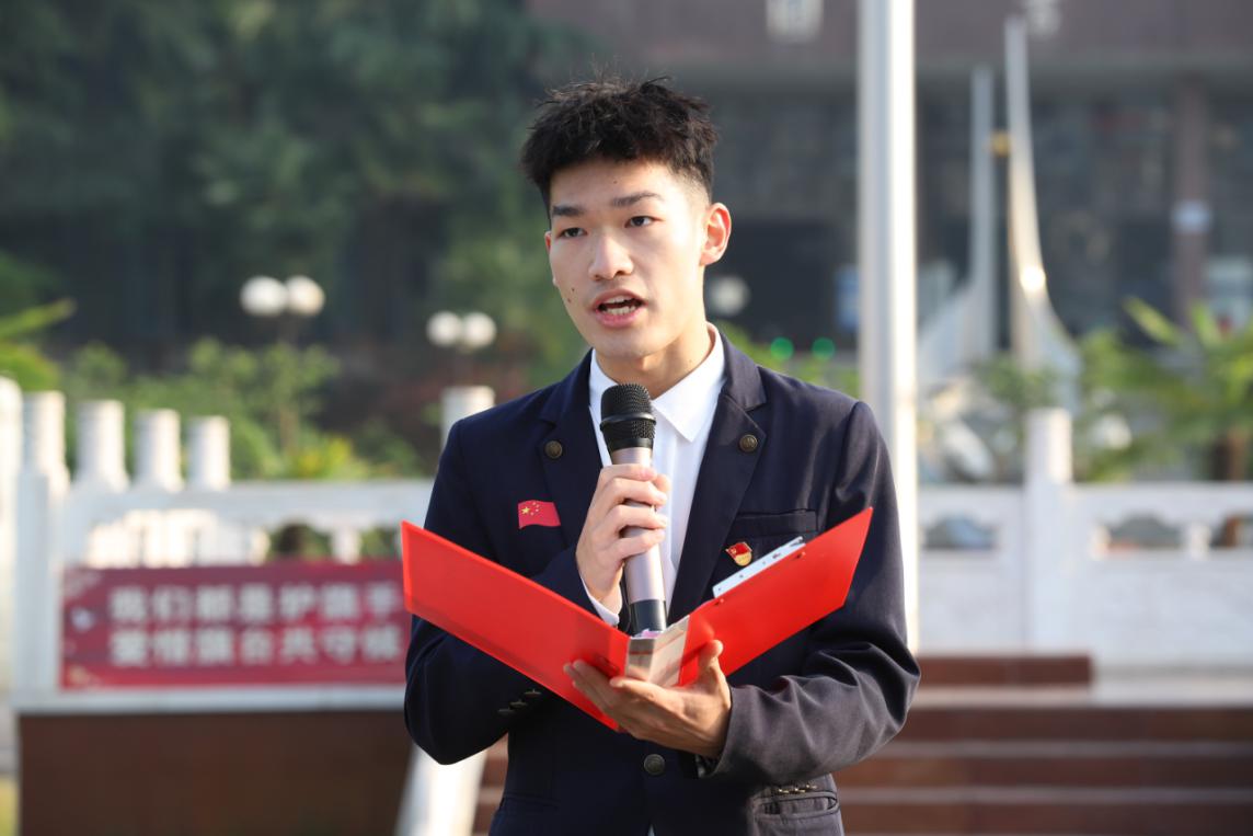 员工代表1901班汪子恒同学以“红色的五月、奋斗的青春”为主题发表国旗下的演讲,他带领大家回顾了中国共产主义青年团在党的领导下始终坚定不移跟党走的光辉历程,号召同学们要坚定信念,志存高远;要勤于学习,知行合一;要弘扬正气,勇担使命。