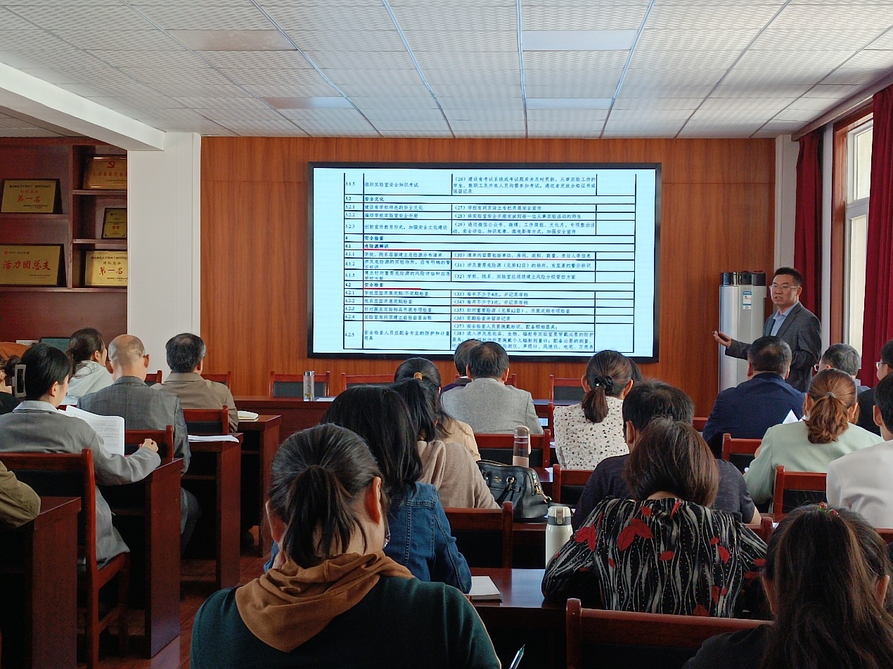 最后,党总支书记罗鸿飞同志就近几天实验室安全检查发现的问题进行了通报。他指出,要进一步梳理问题,强化责任落实,严格对照《高等学校实验室安全检查项目表(2022)》,结合实际,常态化开展实验室安全隐患排查、整改,确保安全稳定。