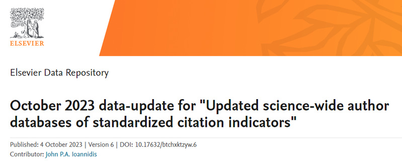 近日,斯坦福大学John P. A. Ioannidis教授团队发布了全球前2%顶尖科学家榜单,并在Elsevier旗下Mendeley Data发布(October 2023 data-update for Updated science-wide author databases of standardized citation indicators)。本次统计数据时间节点为1960-2023年,公司王国宏教授入选2023年度全球前2%顶尖科学家榜单。
