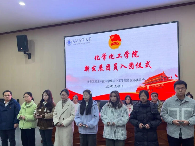 入团仪式在庄严的国歌声中拉开帷幕。接着,辅导员郭先哲宣读2023年下半年学院新发展团员名单,经由班主任、辅导员、培养联系人、党(团)员和群众意见、考察,团支部委员会讨论,本次共有裴冰冰、王佳馨、詹妍、谢雅倩、周佳潼、黄晓凌、郭震、任远扬、徐婷婷、章子怡、陈真会、王嘉钰、万冰纯、杨维一、朱玉婕等15名同学光荣地加入中国共产主义青年团。