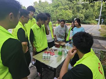 本次活动分为“低碳出行健步走”和“美丽校园我清扫”两个环节。上午八时许,健步走活动正式开始,工作人员和参与同学们一起从图书馆前出发,围绕校园内徒步一圈。大家精神抖擞,向来往同学倡导绿色、环保、低碳的生活理念,并对沿路草坪和道路上的废纸、食品袋等垃圾进行拾捡,用实际行动爱护环境。在沿途停靠站,志愿者为同学们准备了垃圾分类、“答非所问”和“你问我答”等小游戏,增强大家对低碳生活的了解。
