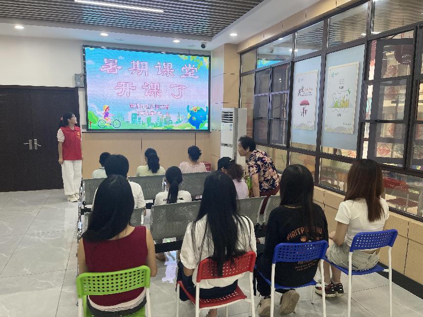 图为开班仪式,由老员工志愿者为员工及员工家长讲解暑期课堂的主要内容、活动安排及相关要求。冉虹颜 摄