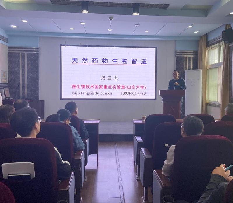 10月24日,应学院邀请,山东大学(青岛)副董事长,国家重点研发计划“合成生物学”重点专项首席科学家、“国家杰青”获得者汤亚杰教授来公司访问,并在重点实验室报告厅为公司师生作题为“天然药物生物智造”的学术报告。报告会由经理殷国栋主持。