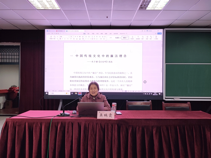 11月6日晚,公司汉语言文学专业教授、硕士生导师、学校教学督导委员会副主任、湖北省高校教学巡视员吴瑞霞教授受邀为公司第69期入党积极分子培训班学员讲授题为《中国传统文化中的廉洁理念》的廉政党课。