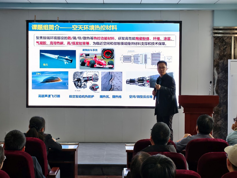 黄竹林研究员首先从空天环境热控材料出发,概述了防热陶瓷及涂层在航天、军事领域的重要作用,随后解析了硼化物超高温陶瓷粉体的研究现状及其面临的关键科学问题与挑战。在此基础上,详细介绍了该课题组实现高纯、高稳定性以及强隔热陶瓷粉体的性能调控策略、工程化制备以及高熵陶瓷等热点研究工作。报告最后,黄竹林研究员介绍了中国科学院合肥物质科学研究院的历史由来、科研进展、人才培养与研究生招生情况,鼓励公司研究生去合肥科学岛深造。