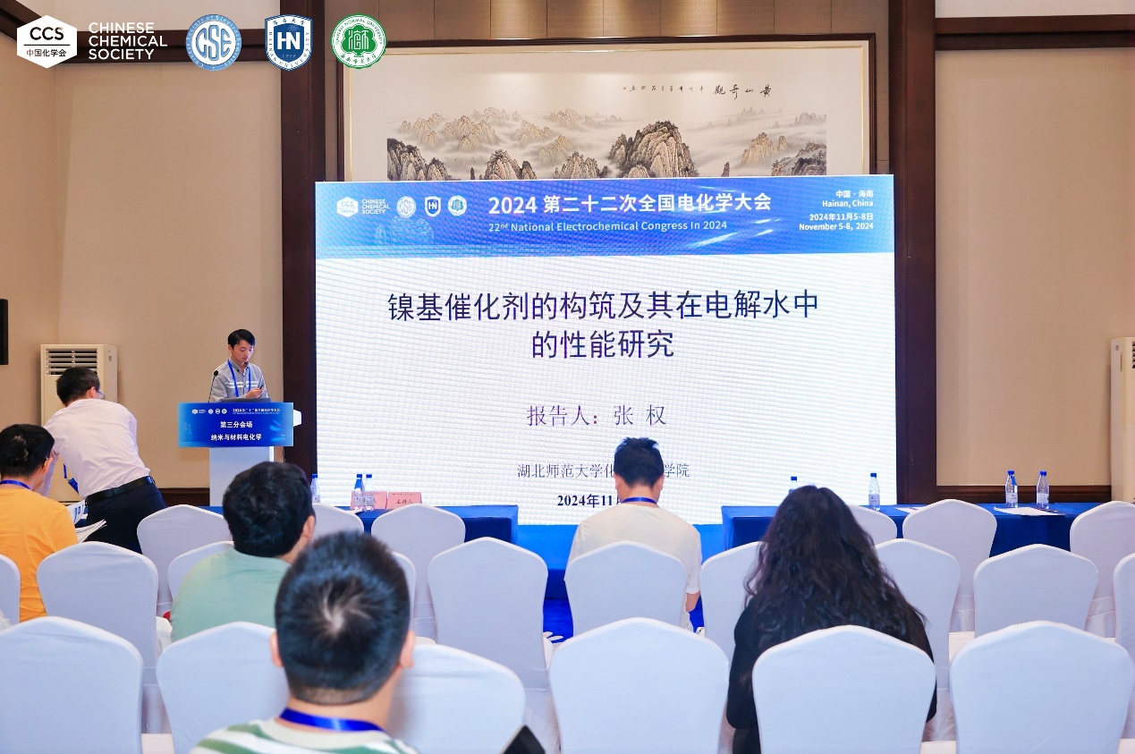 11月5-8日,由中国化学会电化学专业委员会主办、海南大学共同主办、海南大学和海南师范大学联合承办的中国化学会第二十二次全国电化学大会在海南省海口市举行。公司无机化学教研室张权博士参会并在纳米与材料电化学分会场做题为《镍基催化剂的构筑及其在电解水中的性能研究》的口头报告,报告了其通过限域效应和异质结构,以及杂原子掺杂和构建单原子金属合金等几种设计策略,精细调控镍基催化剂的组成和结构,获得性能优异电催化剂在电解水方向的相关研究工作。