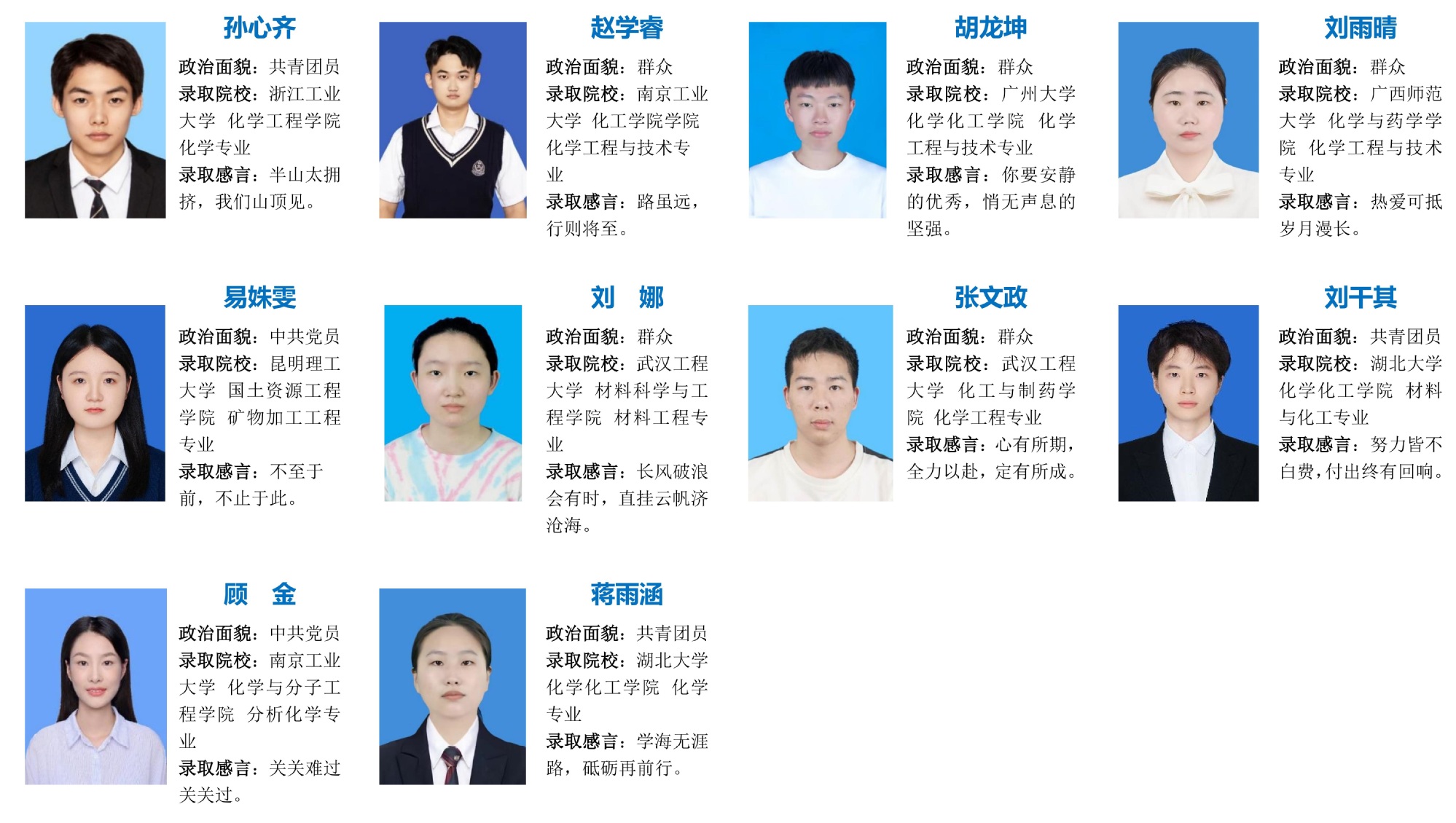 编者按:一分耕耘,一分收获。随着2025年研究生招生考试的尘埃落定,一批批怀揣梦想、勇于挑战的优秀化院学子成功“上岸”,他们用努力和汗水书写了属于自己的辉煌。公司2025届本科生被国内各高校、科研院所共录取108人,占毕业生总数(优师计划除外)的40.60%,连续两年考研录取率超过40%。本期推送化学工程与工艺专业考研光荣榜,愿每一位追梦者,于困顿时以此为灯塔,迷茫处以此为罗盘,汲取榜样的力量,坚定前行的方向。星河浩瀚,前路无垠,愿广大学子以此为阶,续写璀璨新篇!