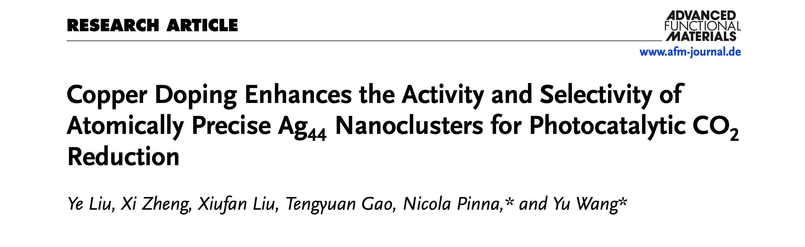 Ye Liu, Xi Zheng, Xiufan Liu, Tengyuan Gao, Nicola Pinna*, Yu Wang*