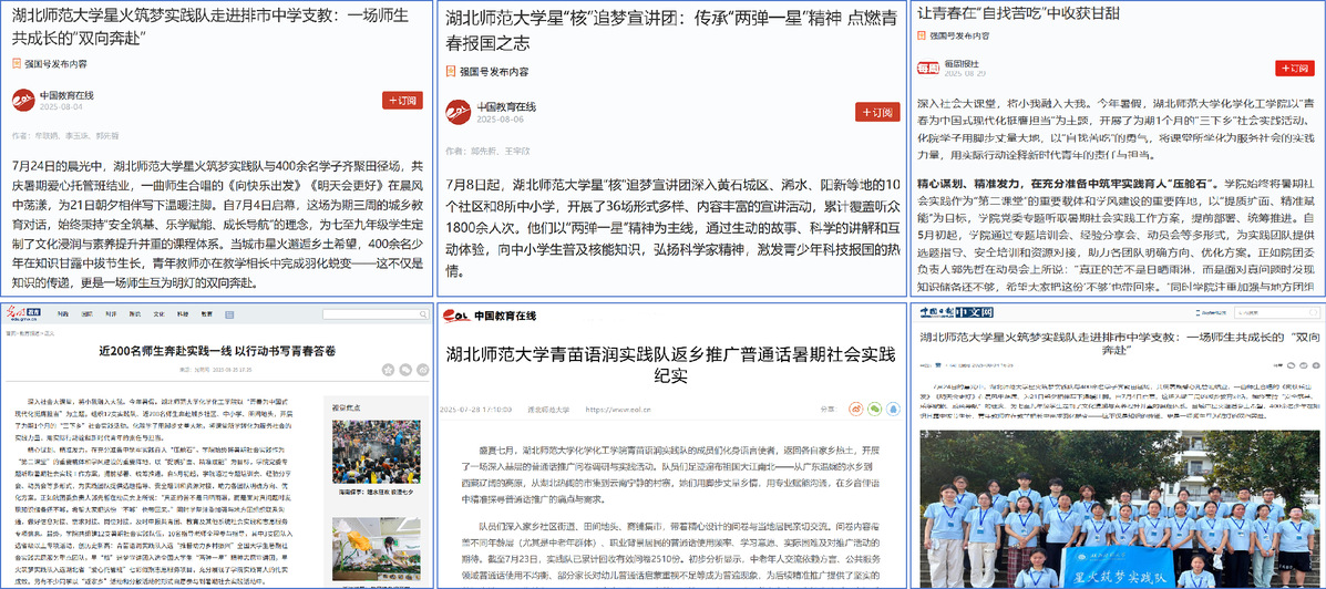 近日,“学习强国”学习平台、光明网、中国老员工在线、中国日报网、中国网等多家主流媒体先后报道公司2025年暑期“三下乡”社会实践活动。截至目前,累计获报道18篇。