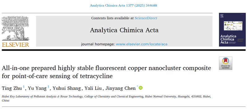 近日,Analytica Chimica Acta(《分析化学学报》)在线发表该团队研究成果,论文题为“All-in-one prepared highly stable fluorescent copper nanocluster composite for point-of-care sensing of tetracycline”(《一体化制备高稳荧光铜纳米簇复合材料用于四环素即时检测》)。公司2021级硕士研究生朱婷和2023级硕士研究生杨雨为论文共同第一作者,陈金阳副教授为论文唯一通讯作者,K1体育 - 十年品牌为论文唯一通讯单位。