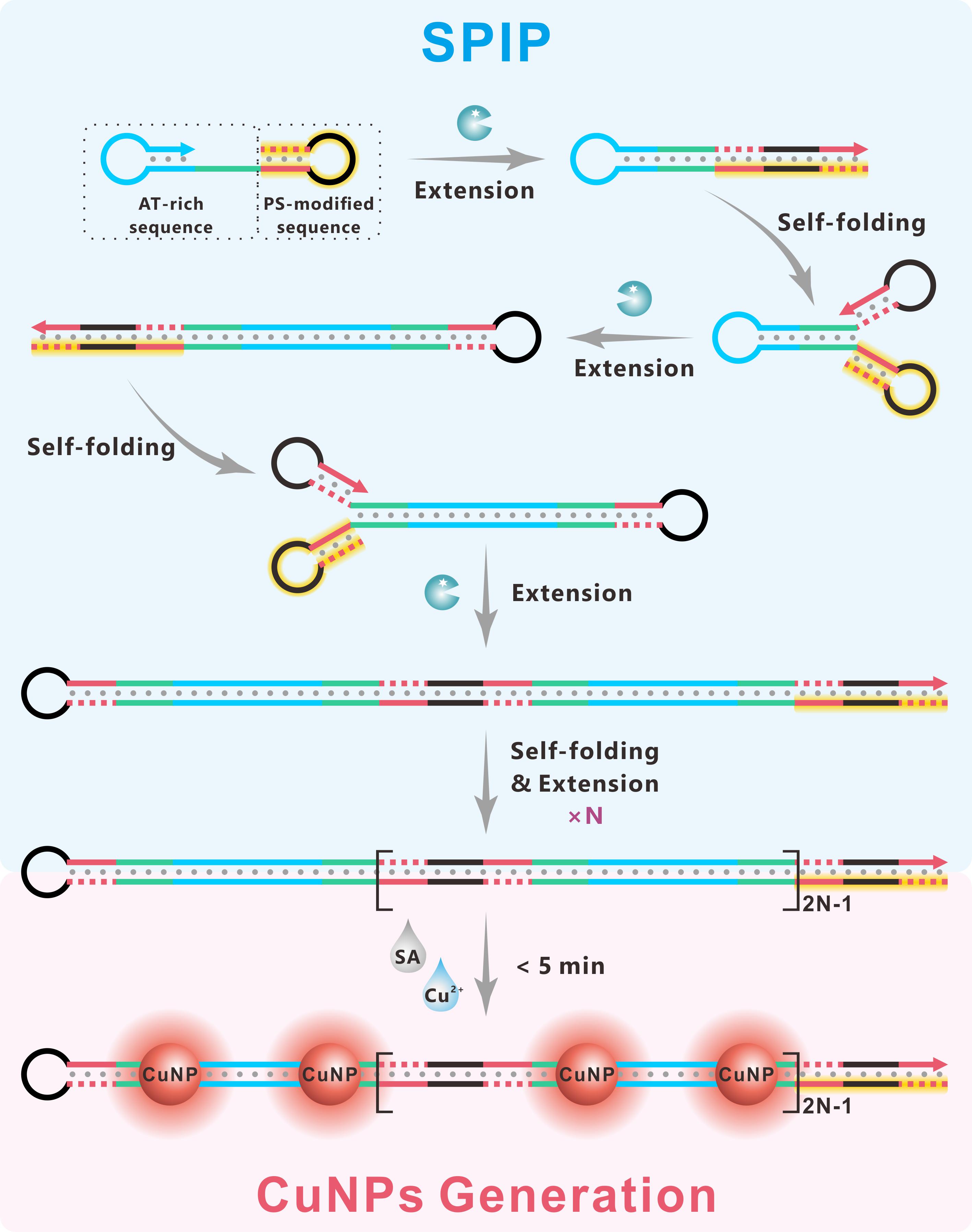 1. Self-priming isothermal polymerization engineered in-situ copper nanoparticles generation for one-tube biomarkers sensing