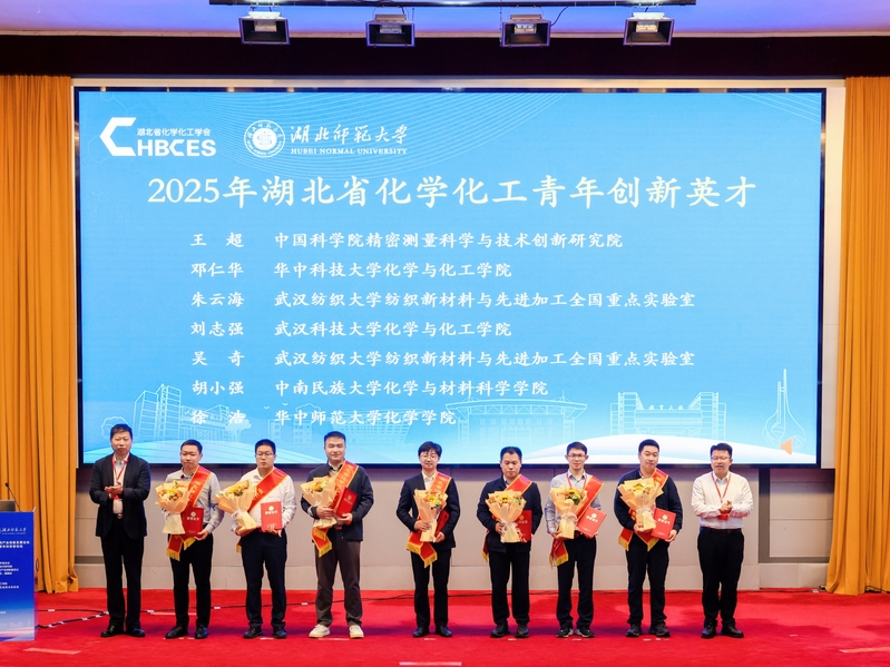 湖北省化学化工学会青年委员会秘书长陈义中为“2025年青年学术活动先进单位”代表颁发奖牌