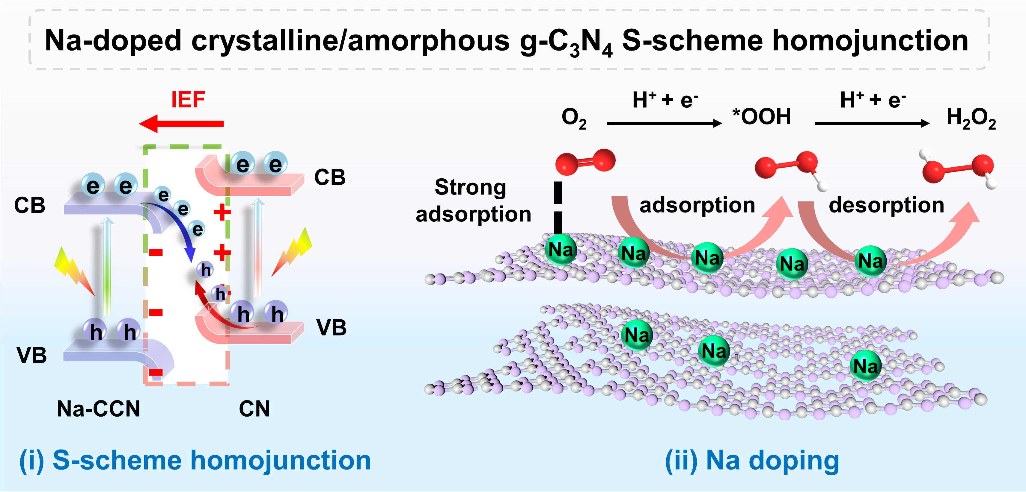 钠掺杂结晶/非晶g-C3N4光催化剂产H2O2活性增强机理图