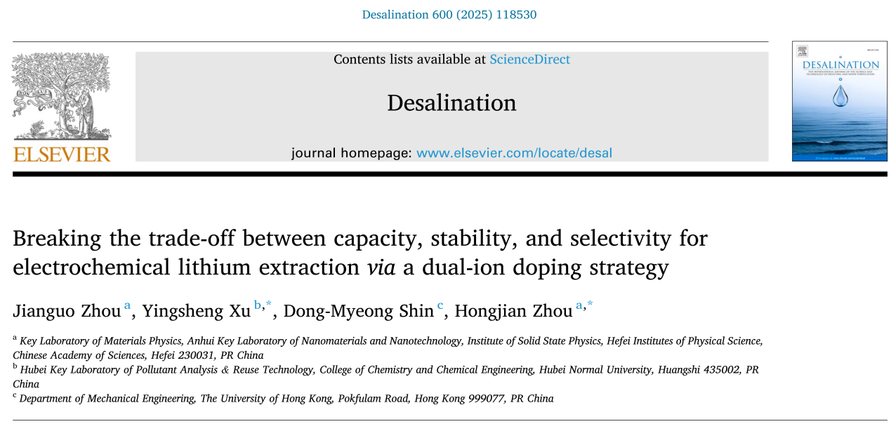 该成果于2025年1月发表于中科院SCI大类一区Desalination(IF:9.8),徐应生博士和中科院合肥物质研究院周宏建研究员为论文共同通讯作者,K1体育 - 十年品牌为论文第二通讯单位。