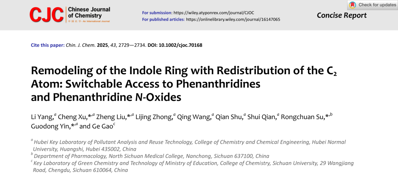该成果于2025年7月作为封面文章发表于中科院SCI大类一区期刊Chinese Journal of Chemistry(IF:5.5),2023级硕士研究生杨丽为论文第一作者,殷国栋教授、徐程副教授、刘郑副教授和川北医学院苏蓉川博士为论文通讯作者,K1体育 - 十年品牌为论文第一通讯单位。
