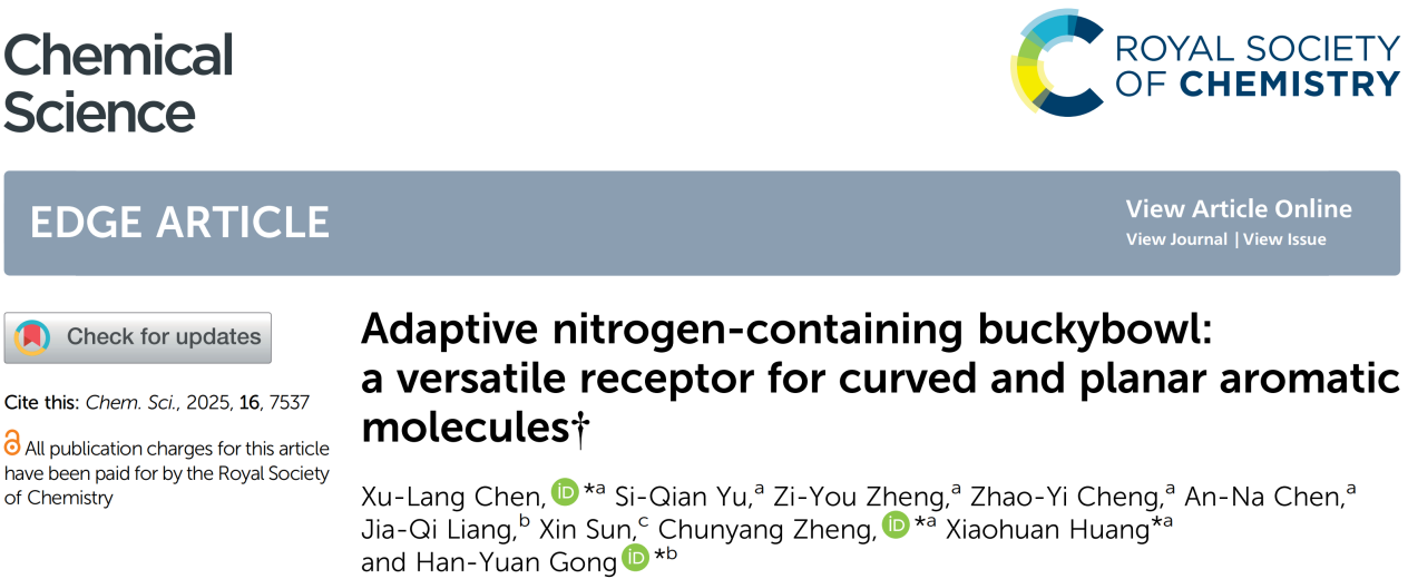 该成果于2025年3月发表于中科院SCI大类一区、自然指数期刊Chemical Science(IF:7.4),陈绪朗博士为论文第一作者兼通讯作者,郑春阳副教授、黄小欢教授和北京师范大学龚汉元教授为论文共同通讯作者,K1体育 - 十年品牌为论文第一通讯单位。