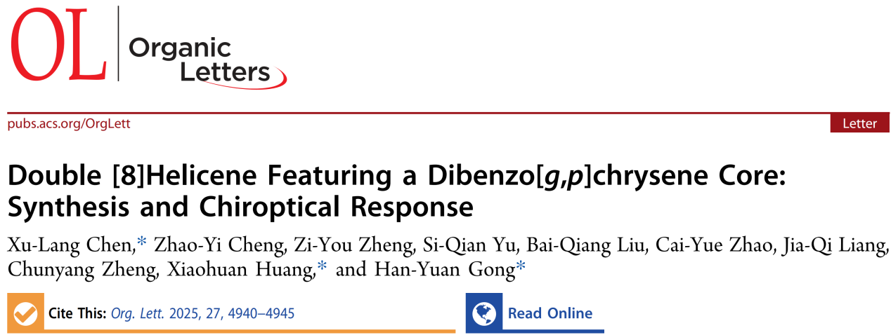 [成果13] 陈绪朗:以二苯并[g,p]屈为核心的双[8]螺旋烯:合成及手性光学响应