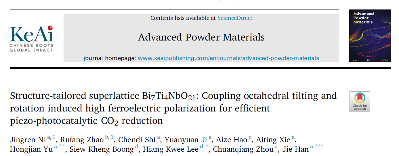 该成果于2025年4月发表于中科院SCI大类一区Advanced Powder Materials(IF:28.6),扬州大学倪敬仁博士为论文第一作者,赵茹芳博士为共同第一作者,扬州大学于洪鉴教授、韩杰教授以及南洋理工大学Hiang Kwee Lee教授为论文共同通讯作者,K1体育 - 十年品牌为论文第二通讯单位。