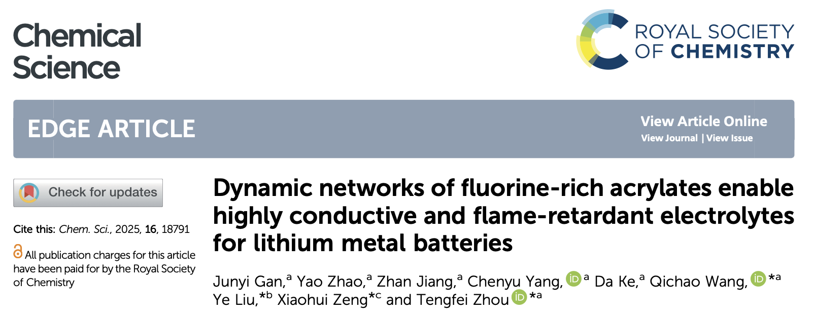 [成果39] 刘野:通过富氟官能团协同调控 Li+传输与界面稳定性,实现高导电性且安全的锂金属电池