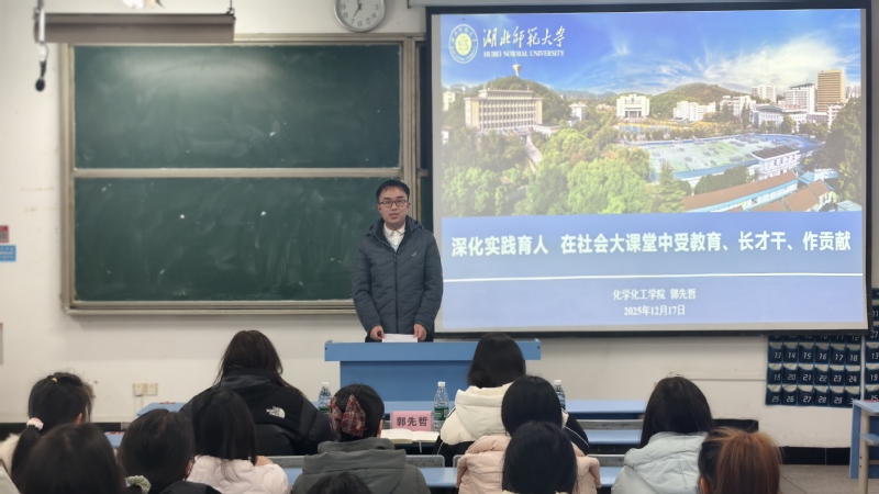 辅导员郭先哲作动员讲话,他指出,社会实践作为坚定理想信念“必修课”、了解国情民意“观察窗”、练就过硬本领“训练场”和服务奉献社会“连接器”,具有重要的育人价值。结合学院实践传统与寒假“返家乡”活动安排,他向同学们提出三点要求:一要精心设计、推动学用结合,鼓励大家从专业相关、社会热点及思政教育类课题中选择或自主申报,将专业知识与家乡需求深度融合,提升实践学术性与实效性;二要严守底线、筑牢安全防线,始终将个人安全置于首位,遵守实践地规定,保持通讯畅通,确保过程平安有序;三要勤于总结、力求实效成长,真正沉入基层,在服务中“自找苦吃”,注重团队协作与素材积累,努力形成高质量实践成果,实现受教育、长才干、作贡献的有机统一。他勉励同学们把握“第二课堂”机遇,在社会大课堂中书写绚丽的青春篇章。