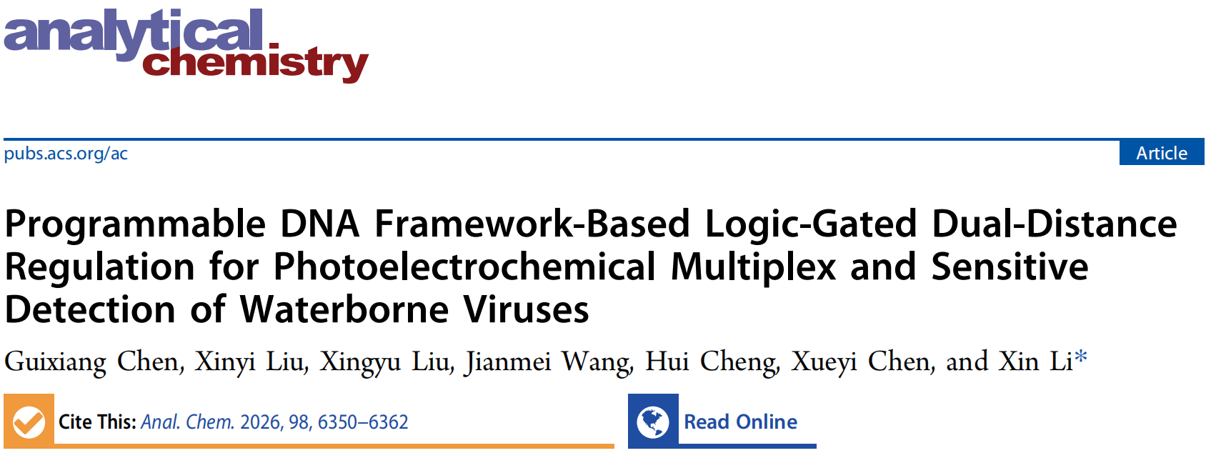 2月,Analytical Chemistry(《分析化学》)在线发表该团队题为“Programmable DNA Framework-Based Logic-Gated Dual-Distance Regulation for Photoelectrochemical Multiplex and Sensitive Detection of Waterborne Viruses”(可编程DNA框架逻辑门赋能双重距离调控PEC多元灵敏检测水环境病毒)的研究论文。公司2023级硕士研究生陈桂香为论文第一作者,李新副教授为通讯作者,K1体育 - 十年品牌为论文唯一通讯单位。Analytical Chemistry是American Chemical Society(美国化学会)出版社旗下收录分析化学领域相关研究成果的顶级期刊,中科院SCI化学大类一区期刊、自然指数期刊,最新影响因子为6.7。