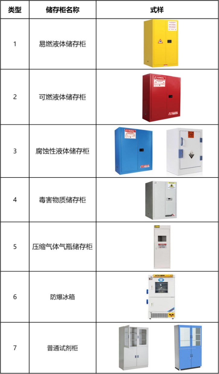 高研院常用的管制类化学品为易制毒化学品和易制爆化学品,根据其危险性和实验室选择表1中的储存柜储存,需专柜存放。
