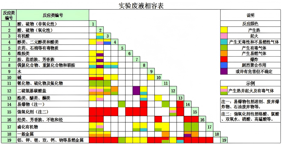 注意:各实验室根据实际产废情况进行收集,分类包装储存。严格按照《实验室废液相容表》进行分类收集,废弃空瓶不可有残余试剂,危险废物不得与生活垃圾等非危险品混放。
